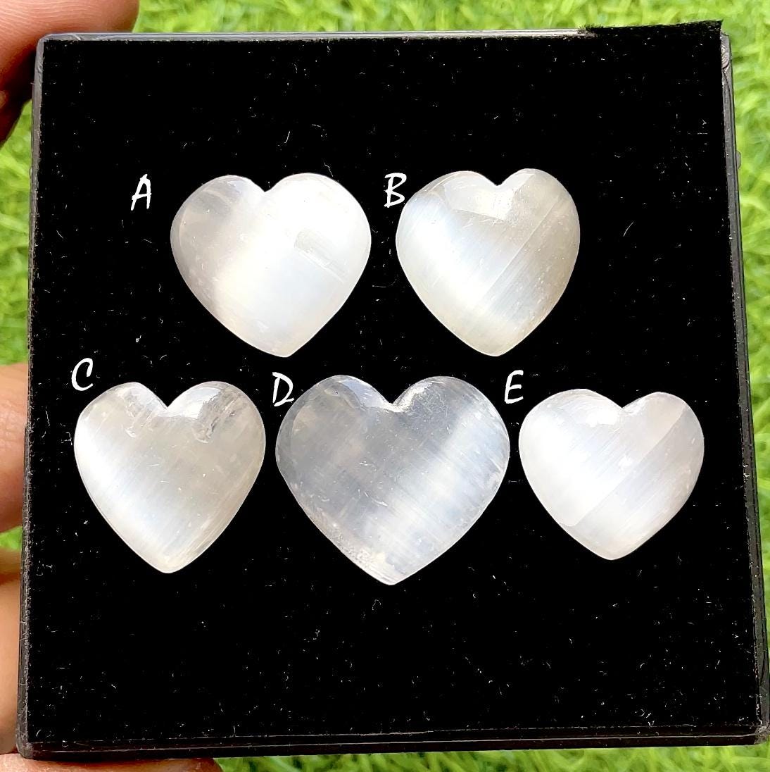 Ethereal Moon Glow Selenite Heart Cacbochon For Wire Wrap, Hand Carved Crystal Hearts For Jewelry Making, Healing Stone Decor
