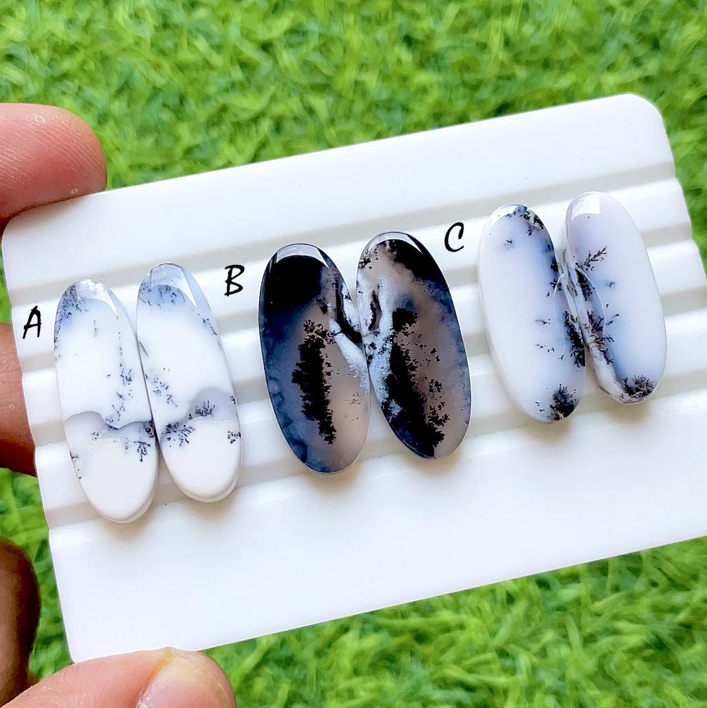 Beautiful Dendritic Opal Pair Cabochon Loose Gemstone For Jewelry, AAA+ Natural Dendritic Opal Matching Pair For Earrings