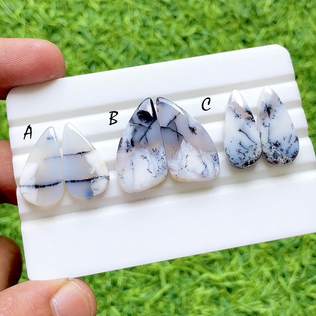 Beautiful Dendritic Opal Pair Cabochon Loose Gemstone For Jewelry, AAA+ Natural Dendritic Opal Matching Pair For Earrings