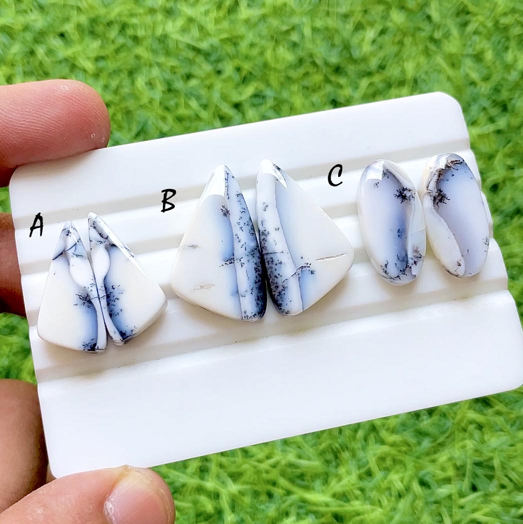 Beautiful Dendritic Opal Pair Cabochon Loose Gemstone For Jewelry, AAA+ Natural Dendritic Opal Matching Pair For Earrings