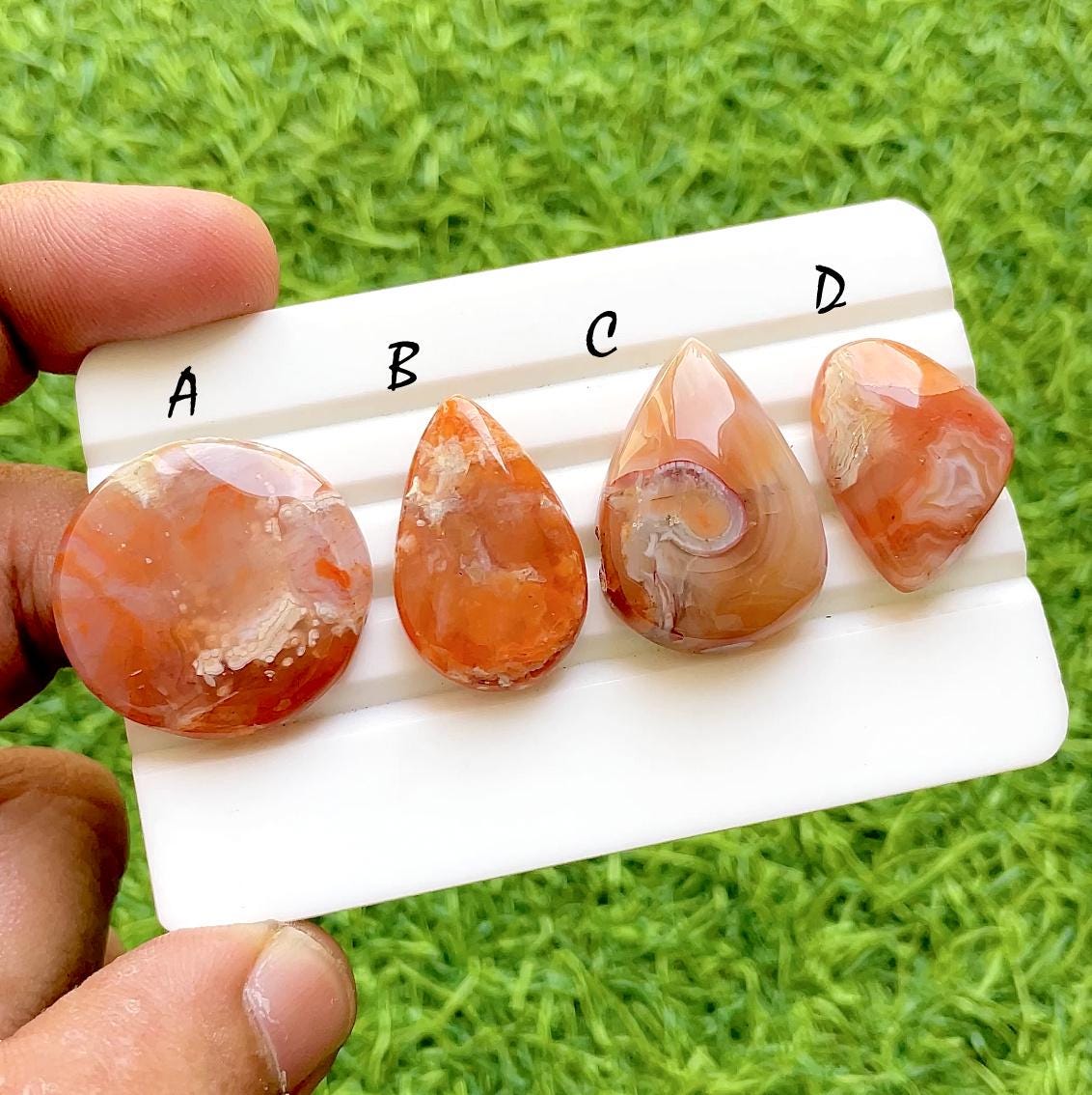 Sunset Fire Carnelian Chalcedony Cabochon Set – Bright Orange Pear & Oval Cabochons – Smooth Polished Loose Gemstones for Jewelry Making