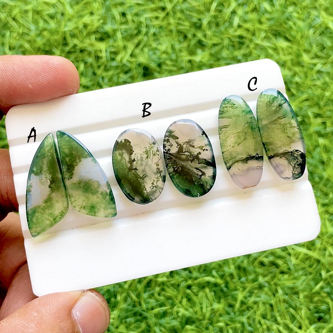 Forest Moss Agate Matching Pair For Jewelry Making, Rare Scenic Moss Agate Pair, High End Matching Gemstones For Earrings - 37350-37352