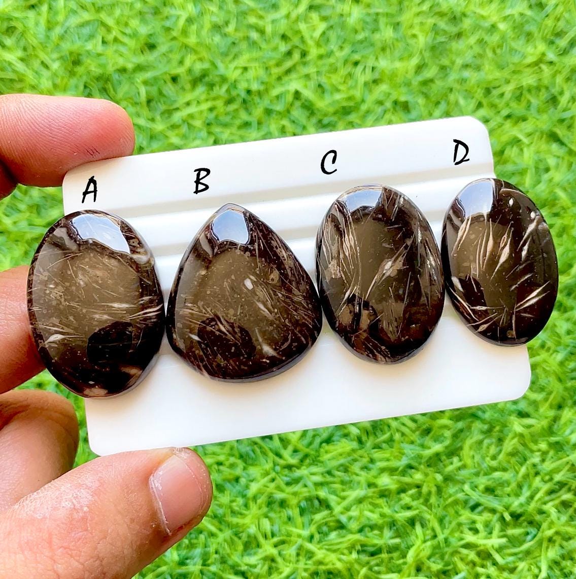Midnight Feather Black Agate Cabochon For Wire Wrap, Natural Plume Pattern Stone, Unique Designer Loose Gemstone For Jewelry