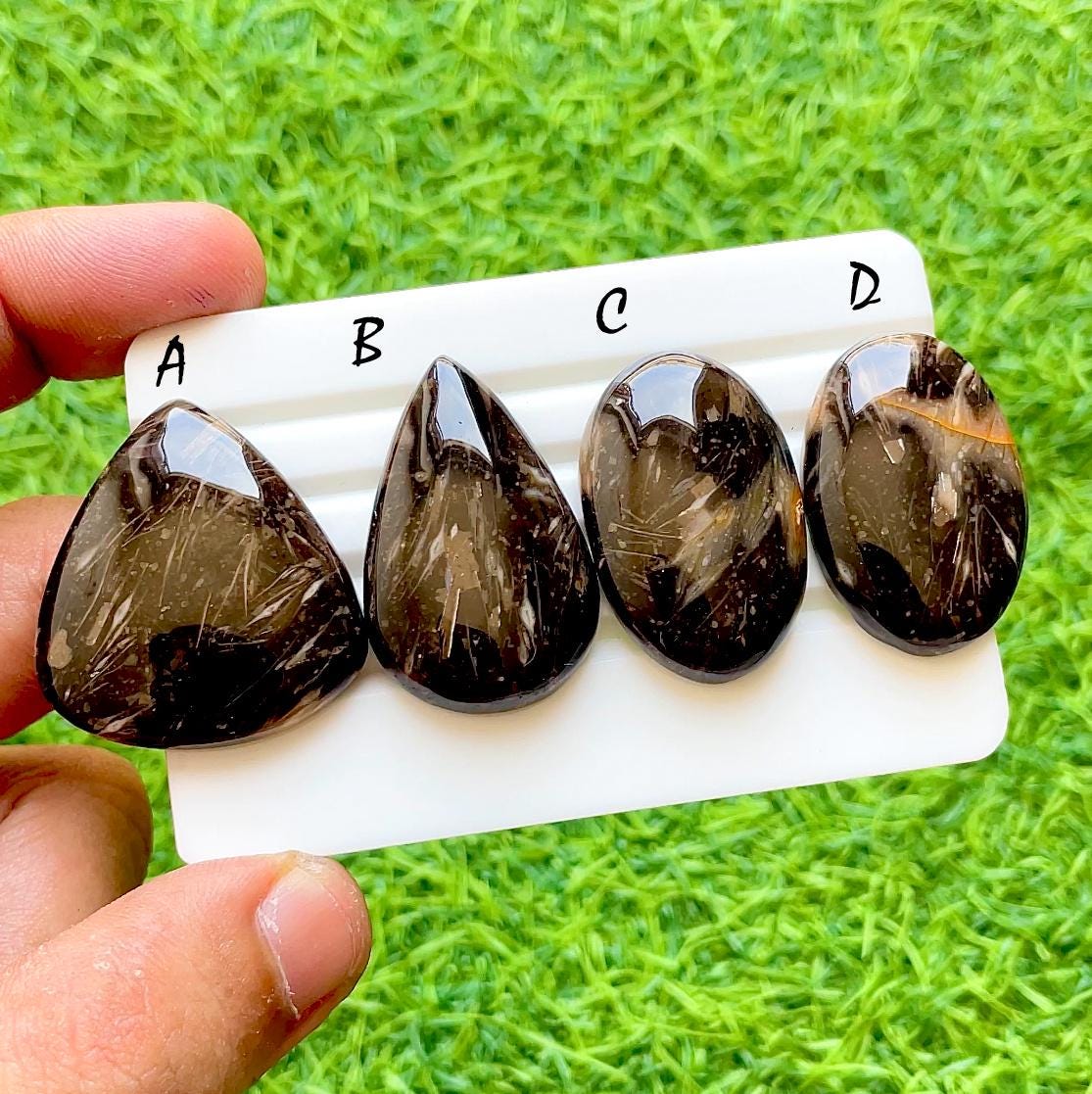 Midnight Feather Black Agate Cabochon For Wire Wrap, Natural Plume Pattern Stone, Unique Designer Loose Gemstone For Jewelry