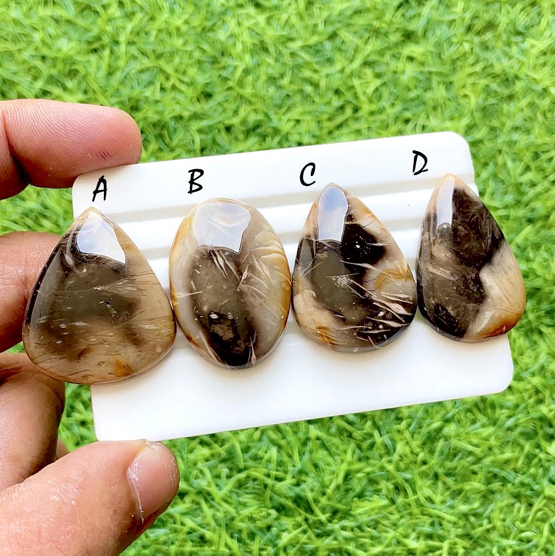 Midnight Feather Black Agate Cabochon For Wire Wrap, Natural Plume Pattern Stone, Unique Designer Loose Gemstone For Jewelry
