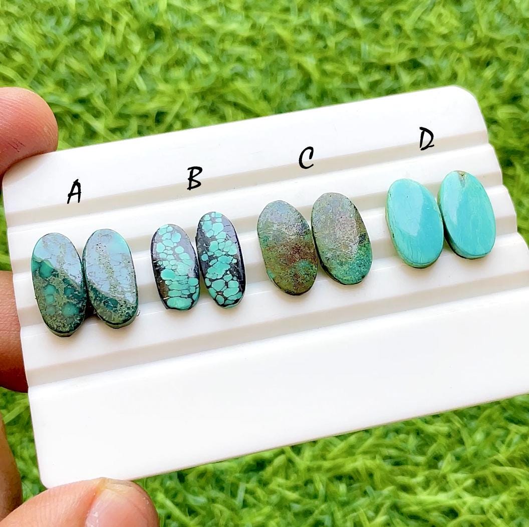 Natural Tibetan Turquoise Matching Pair Cabochon Loose Gemstone For Jewelry Making, AAA+ Natural Tibetan Turquoise Pair Cabochon For Earrings