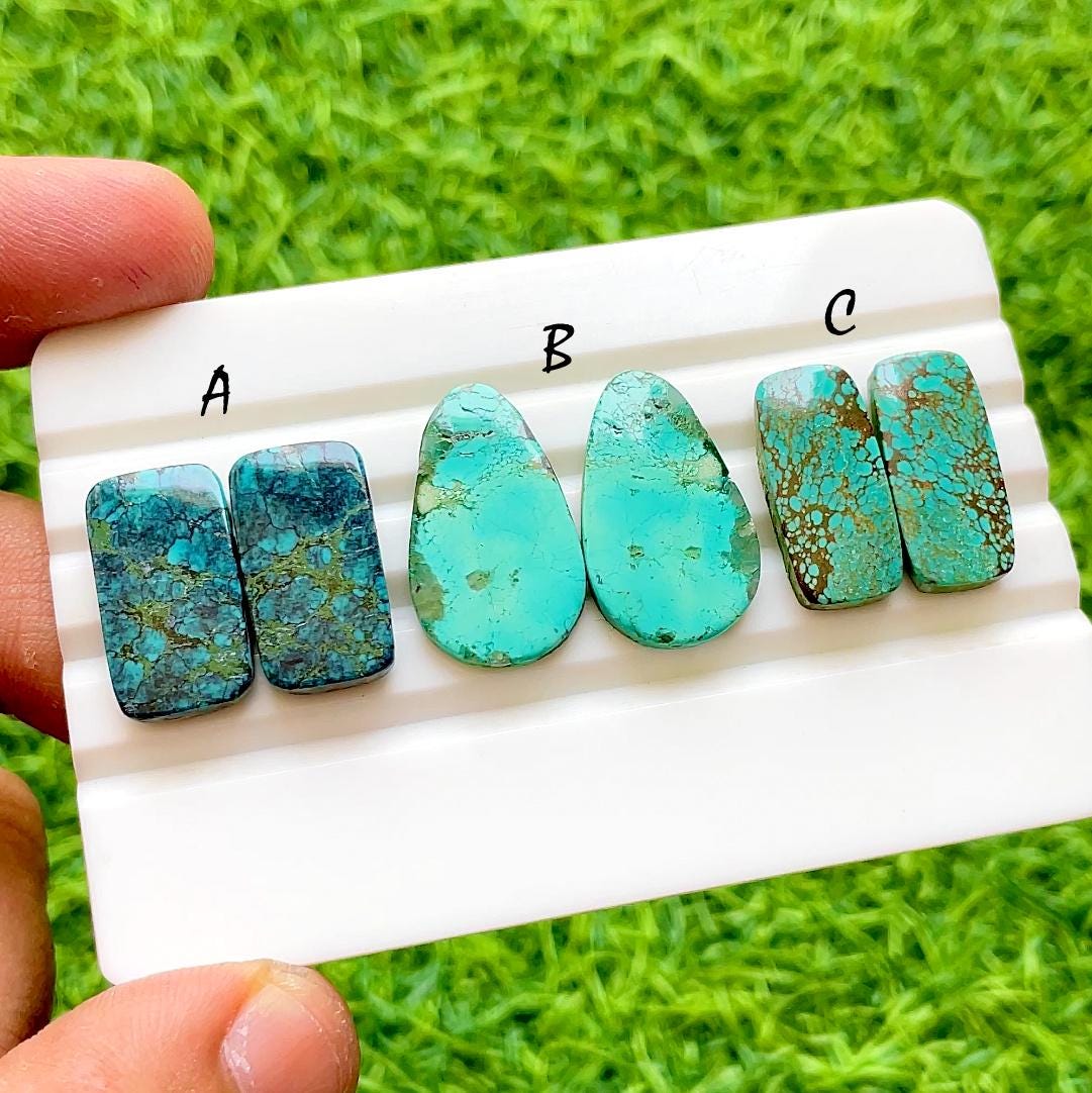 Natural Tibetan Turquoise Matching Pair Cabochon Loose Gemstone For Jewelry Making, AAA+ Natural Tibetan Turquoise Pair Cabochon For Earrings