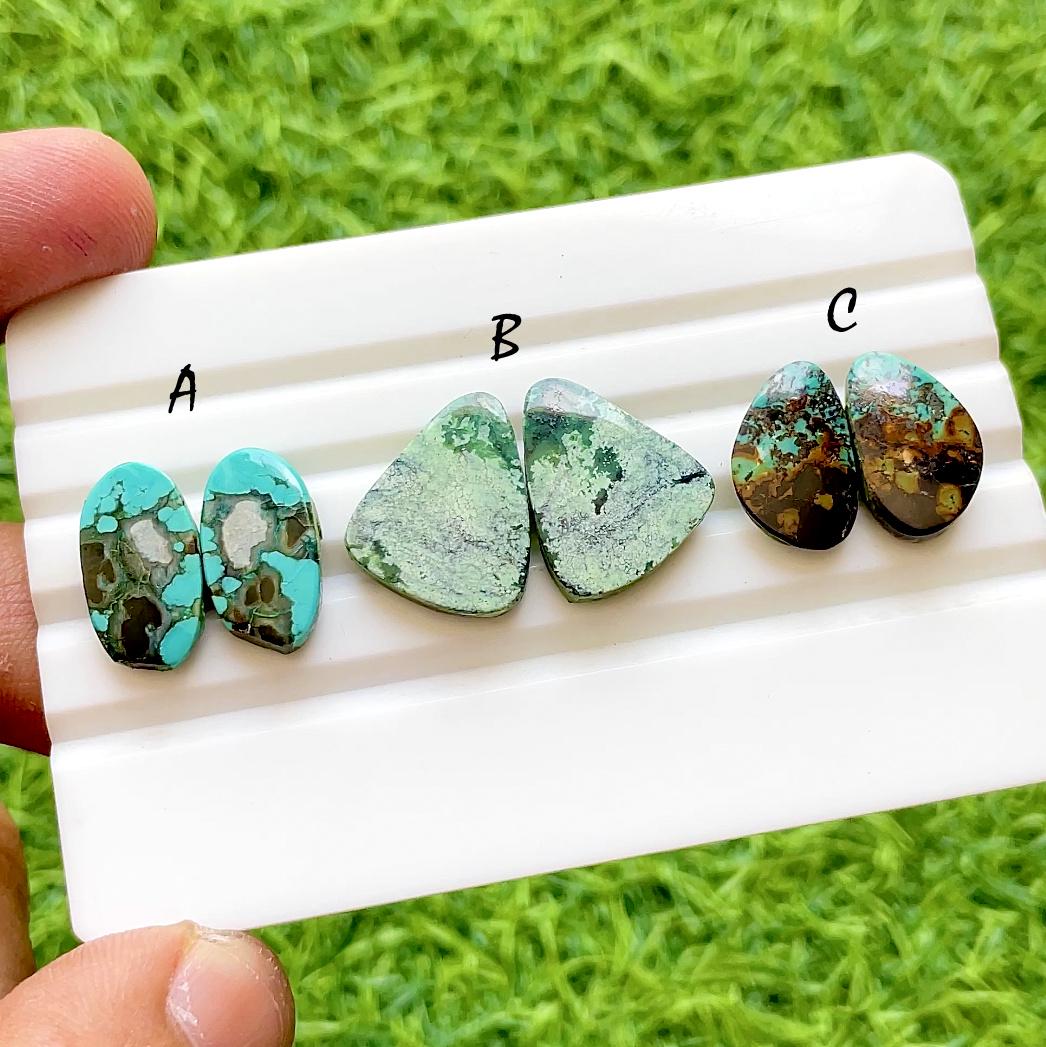 Natural Tibetan Turquoise Matching Pair Cabochon Loose Gemstone For Jewelry Making, AAA+ Natural Tibetan Turquoise Pair Cabochon For Earrings