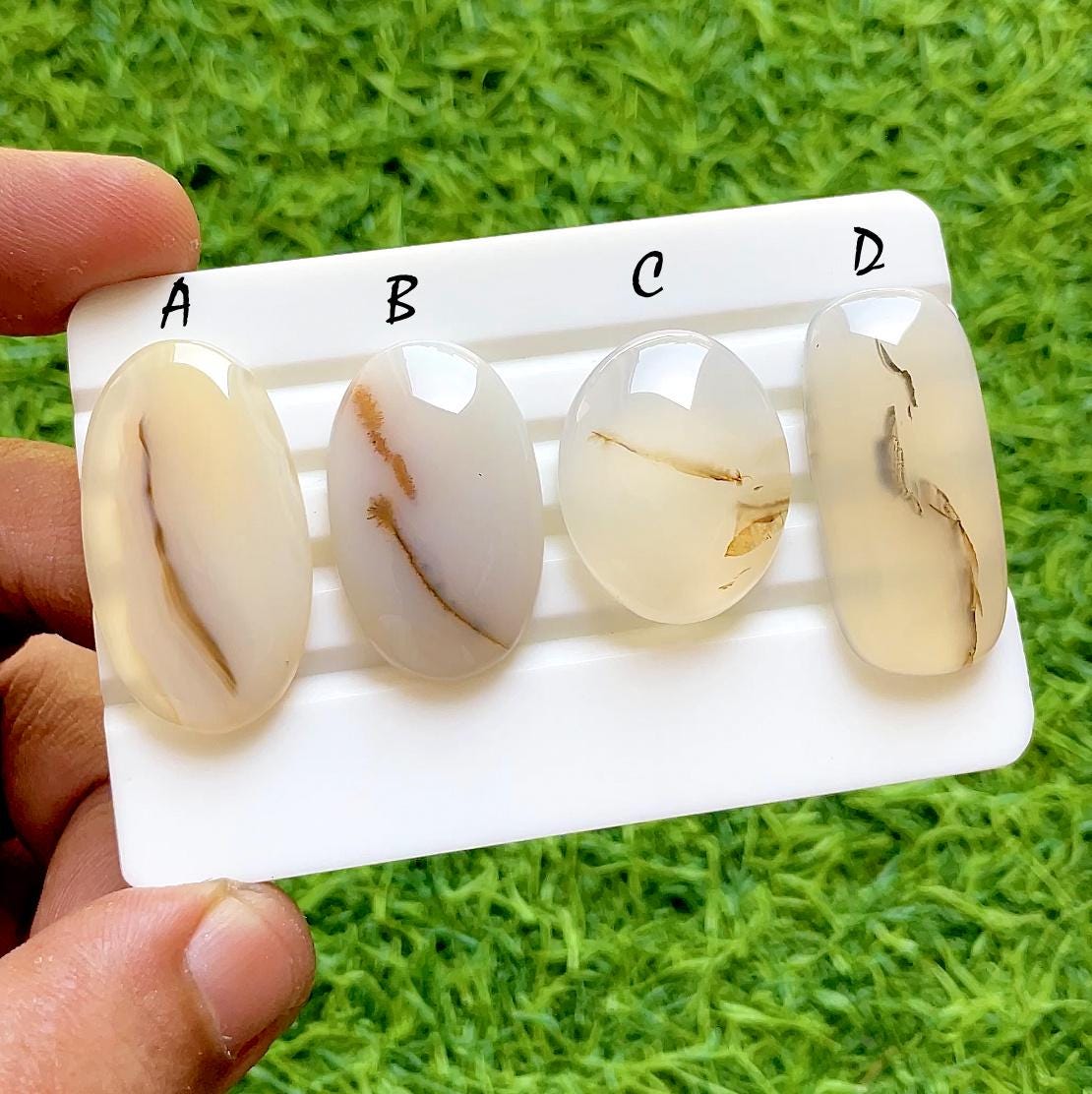 Rare Natural Dendritic Agate Loose Cabochon, Milky White Scenic Gemstone With Natural Inclusion, Unique Designer Jewelry Stone