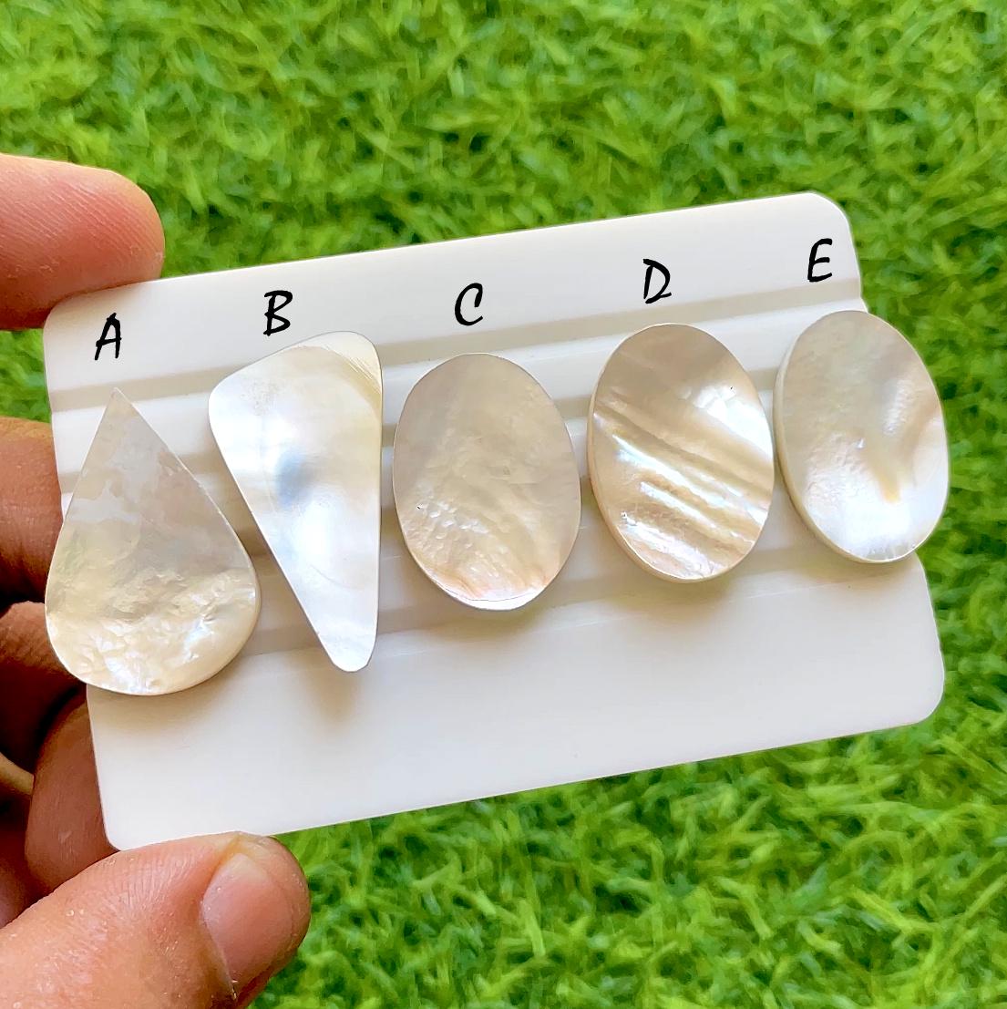 Lustrous Moonlight Shell Mother Of Pearl Cabochon Raw Back, Natural Iridescent Shell Gemstone Flat Back For Jewelry Making