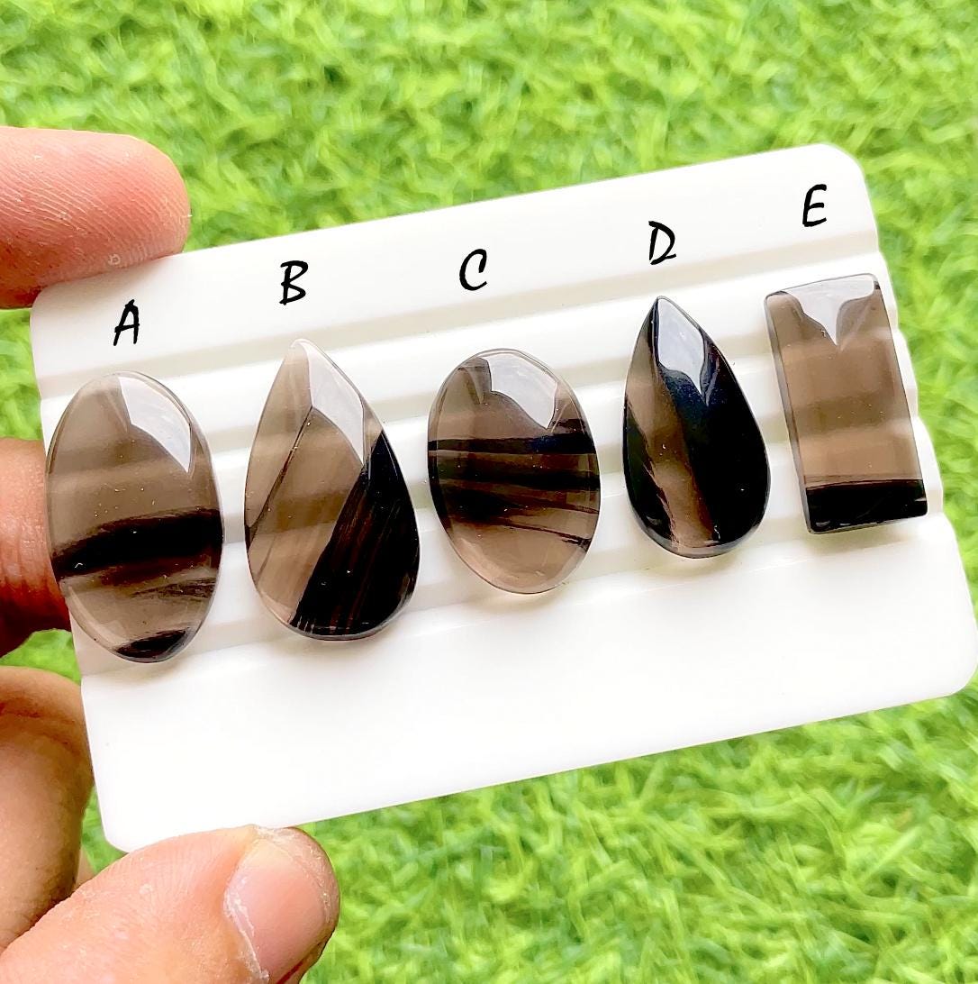 Shadow Line Obsidian Loose Cabochon For Wire Wrap, Natural Black Banded Stone, Elegant Designer Gemstone For Jewelry Making