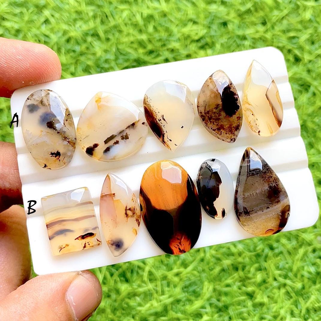 NEW Yellowstone River Montana Agate 5 Pieces Cabochon Lot For Jewelry Making, AAA+ Montana Agate Cabochon For Handmade Jewelry