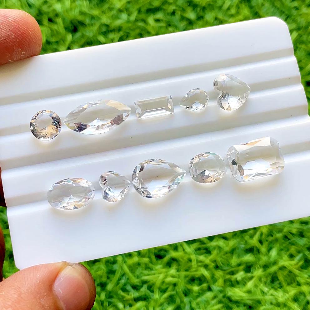 Clear Quartz Faceted Mixed Shape With Pointed Back Gemstone 10 Pieces Lot For Jewelry Making, Faceted Clear Quartz Lot For Handmade Jewelry