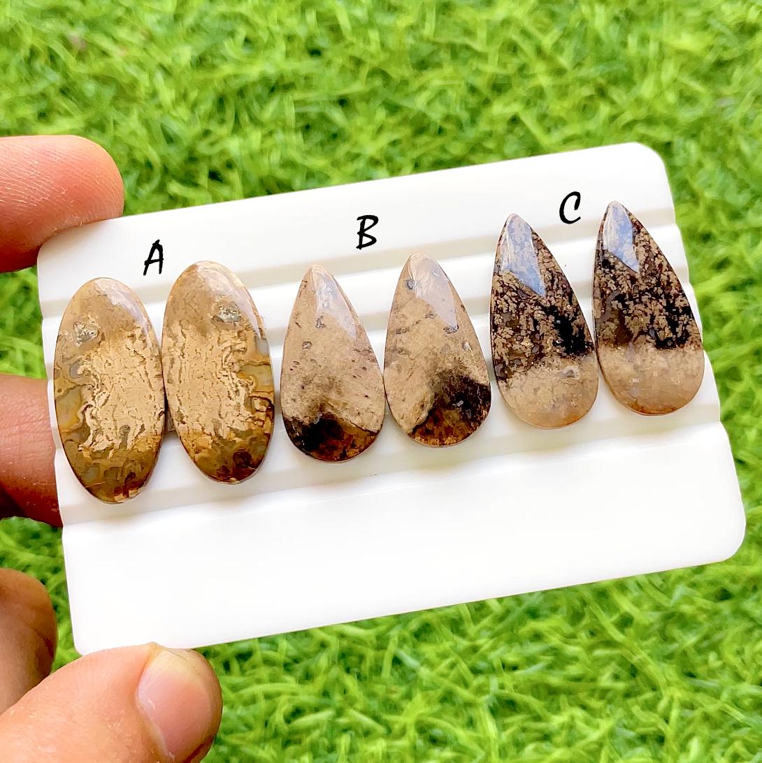 Palm Root Jasper Pair Cabochon Loose Gemstone For Jewelry Making, AAA+ Natural Palm Root Matching Pair Gemstone For Wire Wrap