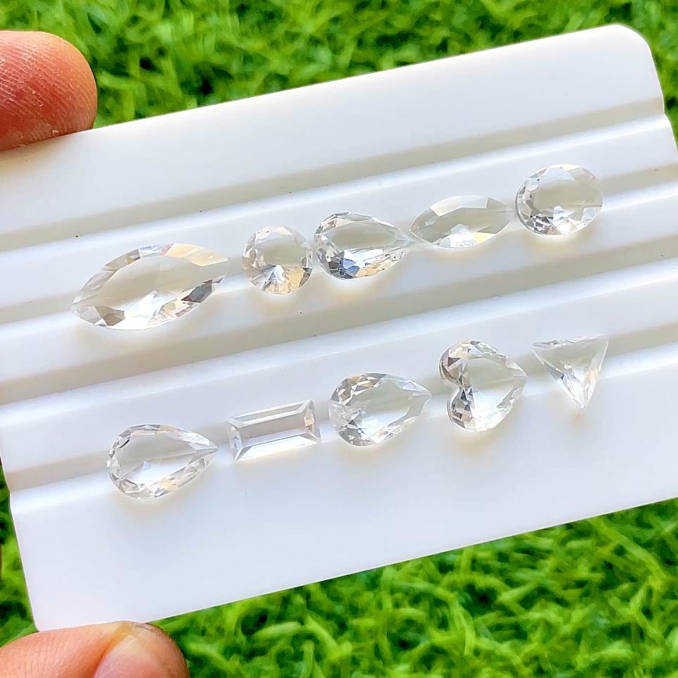 Clear Quartz Faceted Mixed Shape With Pointed Back Gemstone 10 Pieces Lot For Jewelry Making, Faceted Clear Quartz Lot For Handmade Jewelry