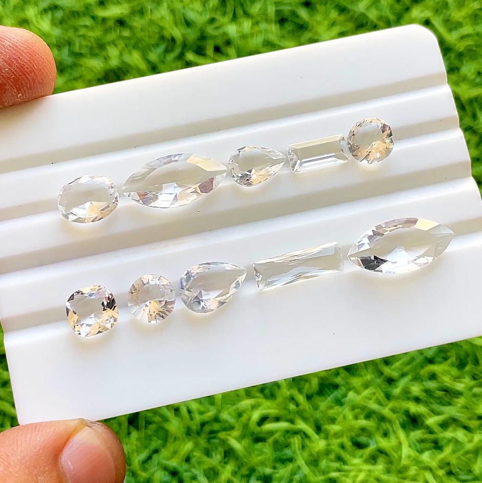Clear Quartz Faceted Mixed Shape With Pointed Back Gemstone 10 Pieces Lot For Jewelry Making, Faceted Clear Quartz Lot For Handmade Jewelry