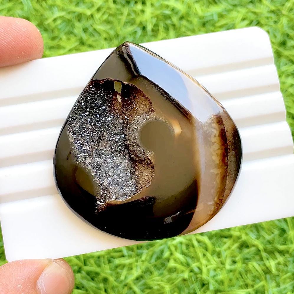 Natural Druzy Agate Cabochon | Sparkling Crystal Center Pear Shape Gemstone | Brown Agate Statement Jewelry Stone