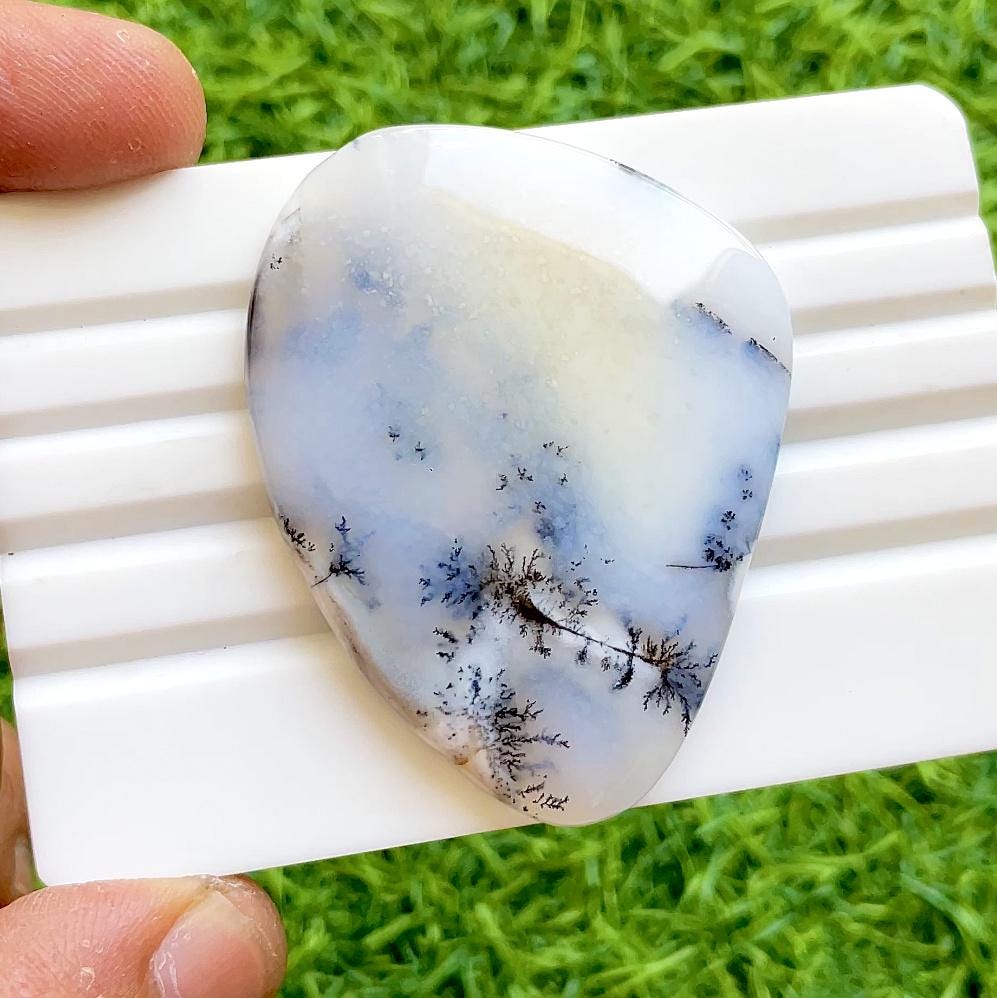 Natural Dendritic Agate Cabochon | Scenic Moss Pattern Pear Shape Gemstone | Landscape Stone for Statement Jewelry
