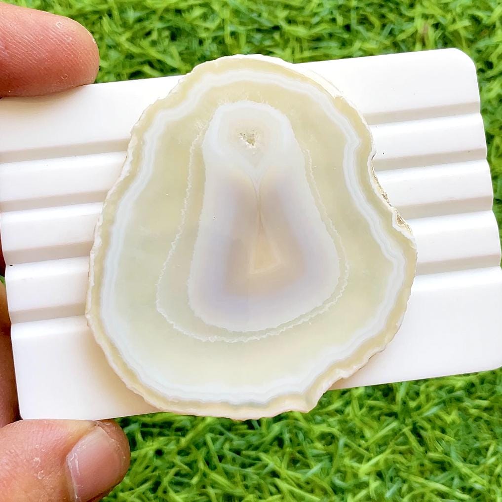 Natural White Agate Slice Cabochon | Polished Freeform Druzy Edge Stone | Statement Jewelry Making Gemstone