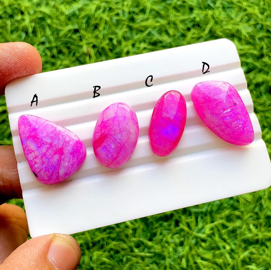 Hot Pink Dyed Moonstone Loose Cabochon For Wire Wrap, Smooth Polished Moonstone Gemstone, Vibrant Pink Jewelry Making Stones