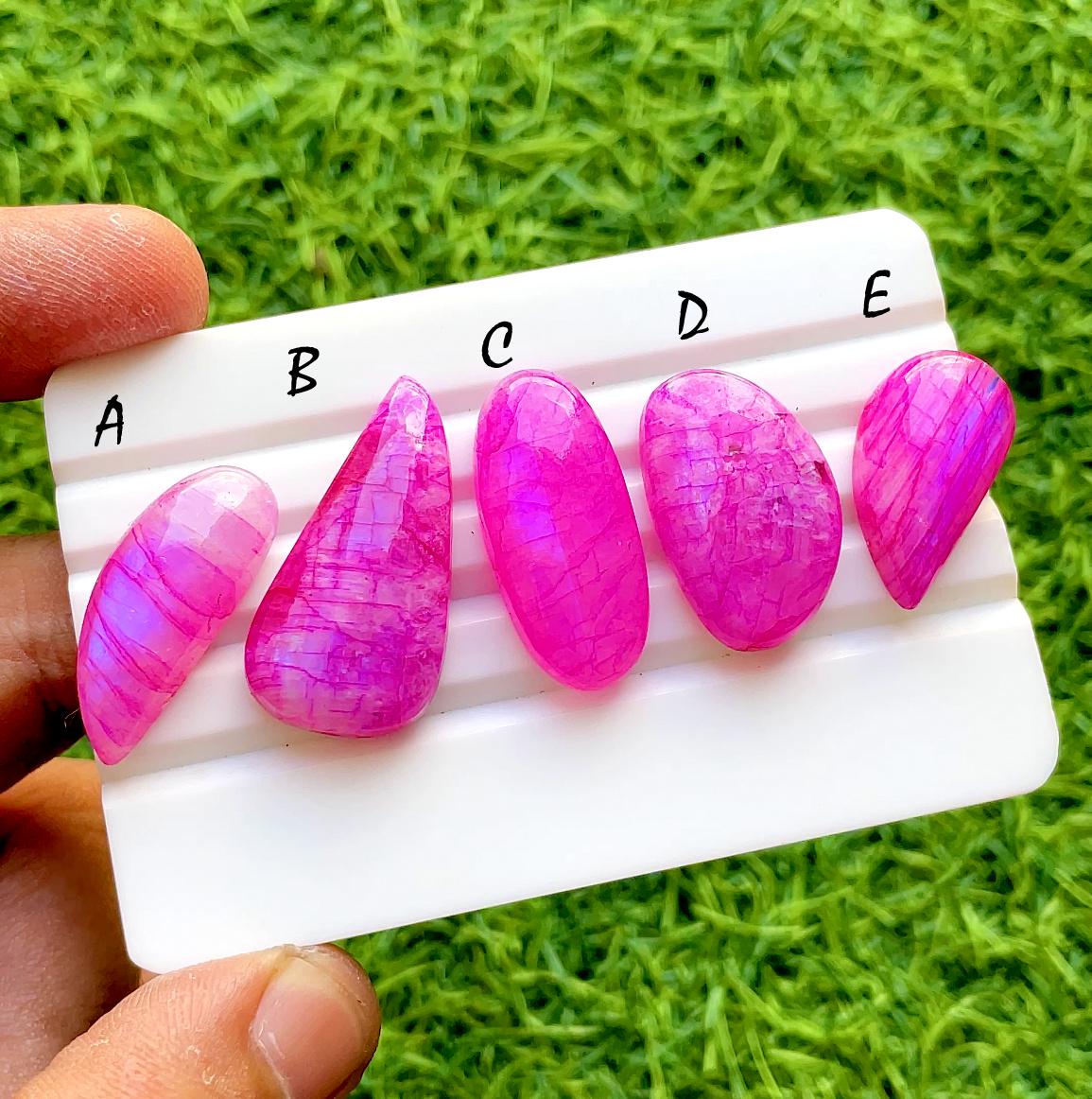 Hot Pink Dyed Moonstone Loose Cabochon For Wire Wrap, Smooth Polished Moonstone Gemstone, Vibrant Pink Jewelry Making Stones