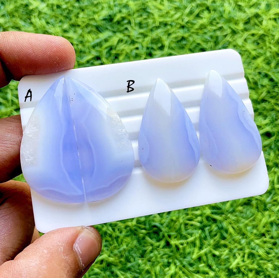 Sky Mist Blue Lace Agate Matched Pair Cabochon, Earth Tone Natural Stone, Soft Cloud Blue Gemstone Pair For Artisan Jewelry