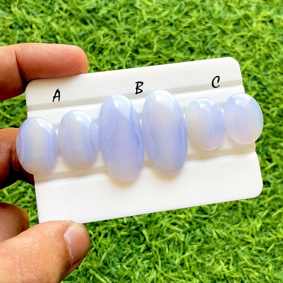 Sky Mist Blue Lace Agate Matched Pair Cabochon, Earth Tone Natural Stone, Soft Cloud Blue Gemstone Pair For Artisan Jewelry