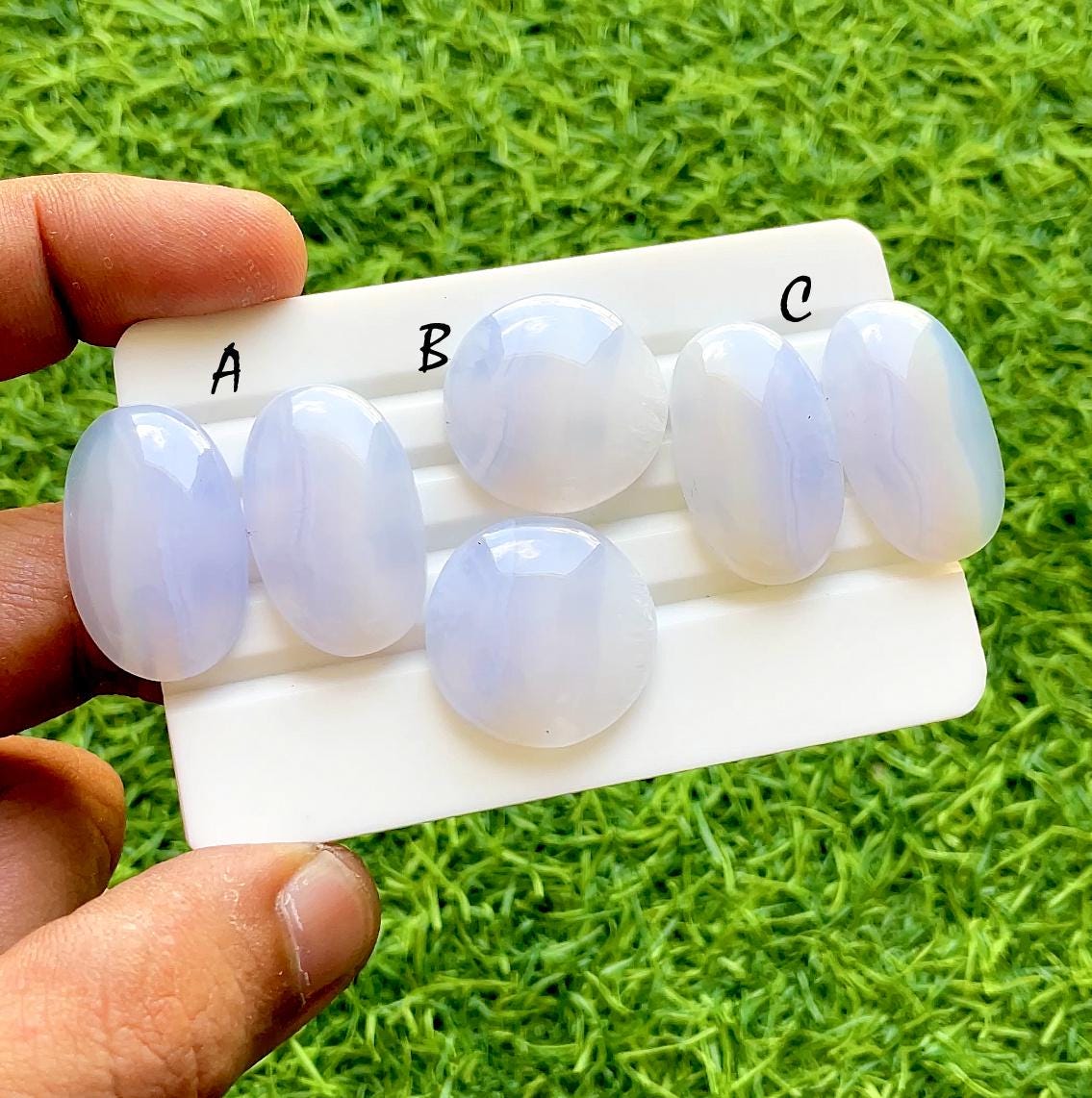 Sky Mist Blue Lace Agate Matched Pair Cabochon, Earth Tone Natural Stone, Soft Cloud Blue Gemstone Pair For Artisan Jewelry