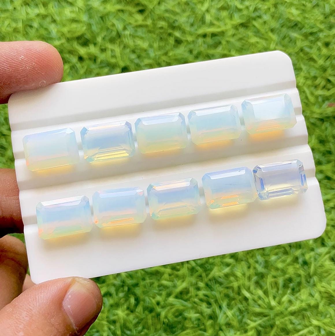 Opalite 10x14 MM Faceted Emerald Cut Shape With Pointed Back Gemstone 10 Pieces Lot For Handmade Jewelry Making, Opalite For Jewelry Making
