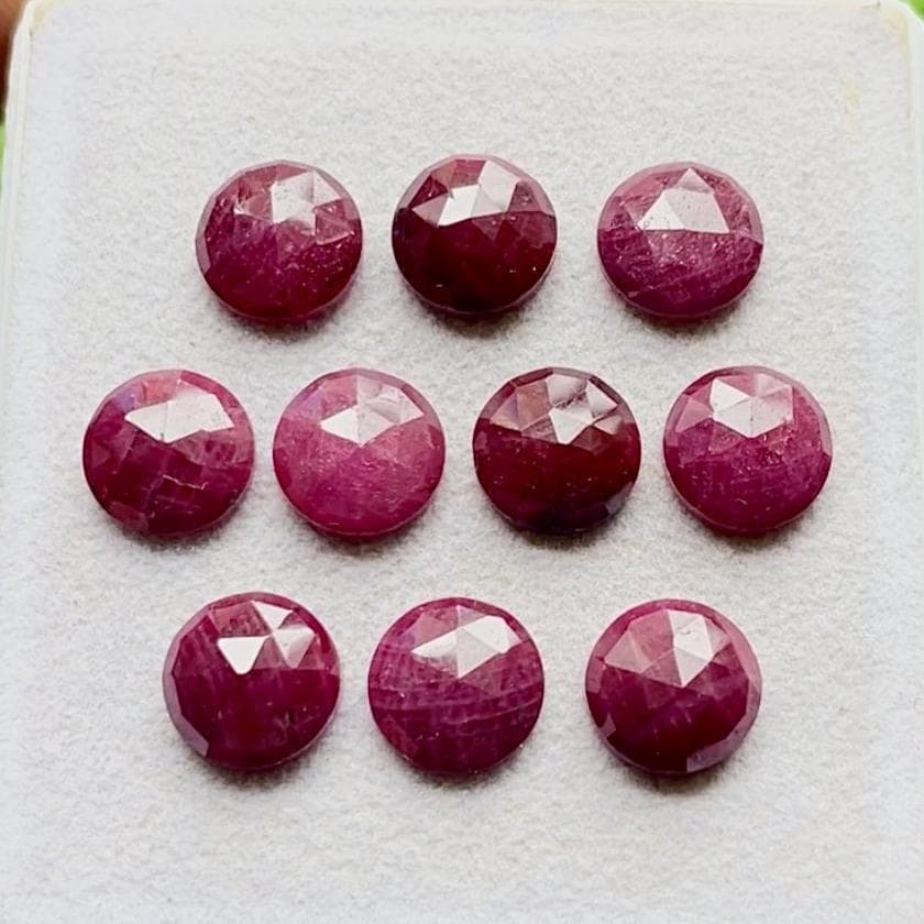 Natural Ruby Gemstone 10 MM Rose Cut Round With Flat Back 10 Pieces Lot For Jewelry Making, AAA+ Ruby Rose Cut Round For Handmade Jewelry