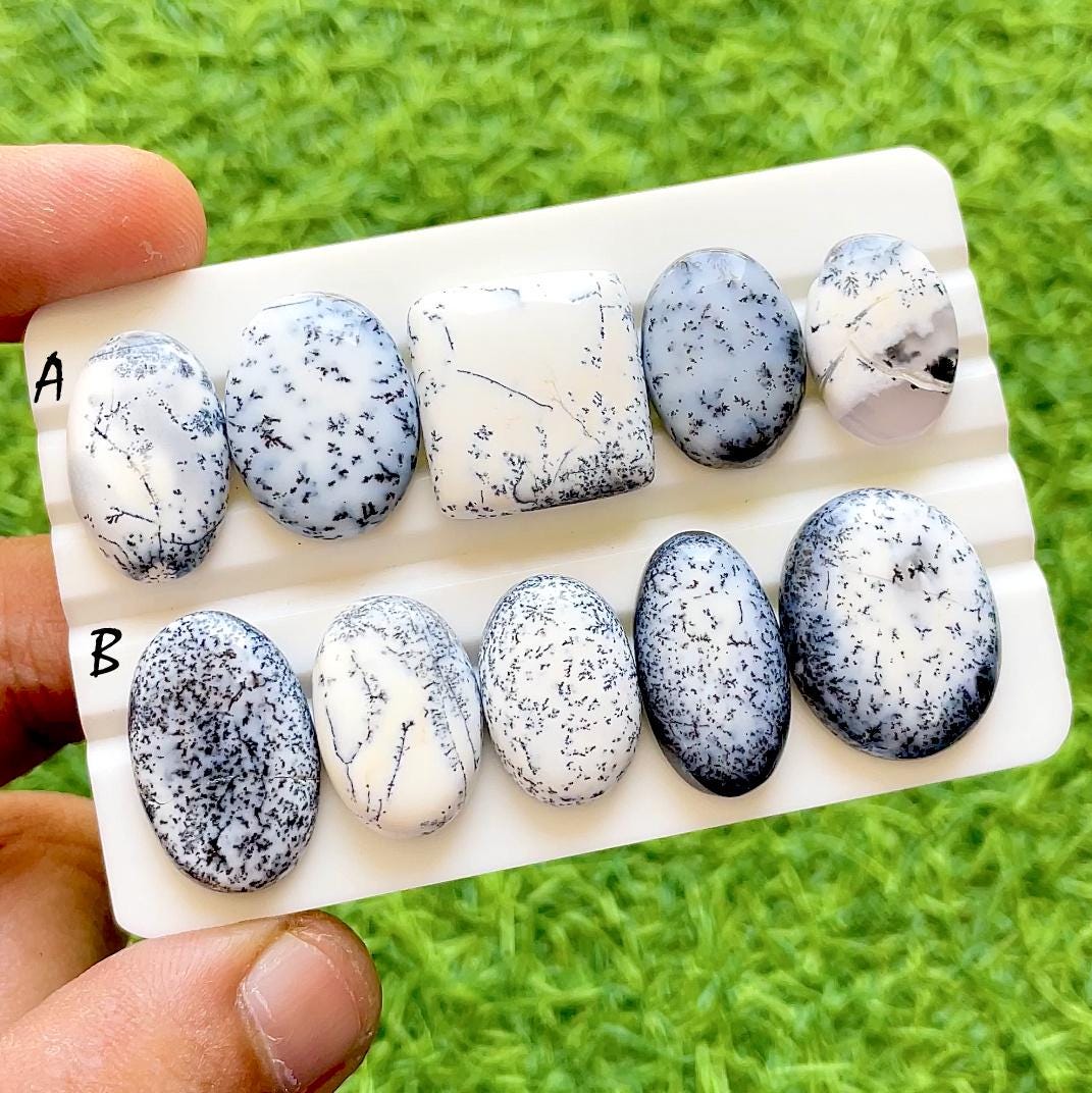 Snow Fern Opal Cabochon For Wire Wrap, Natural Dendritic Opal Loose Gemstones, White Dendrite Opal Cabs For Jewelry Making
