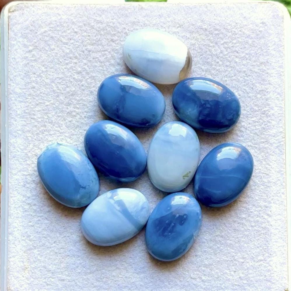 Blue Opal 10x14 MM Oval Shape Calibrated Smooth Cabochon With Flat Back Gemstone 10 Pieces Lot For Handmade Jewelry, AAA+ Blue Opal Stone