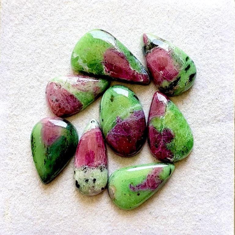 Selected Ruby Zoisite Cabochon Loose Gemstone 8 Pieces Lot, Top Quality Natural Ruby Zoisite With Flat Back For Handmade Jewelry