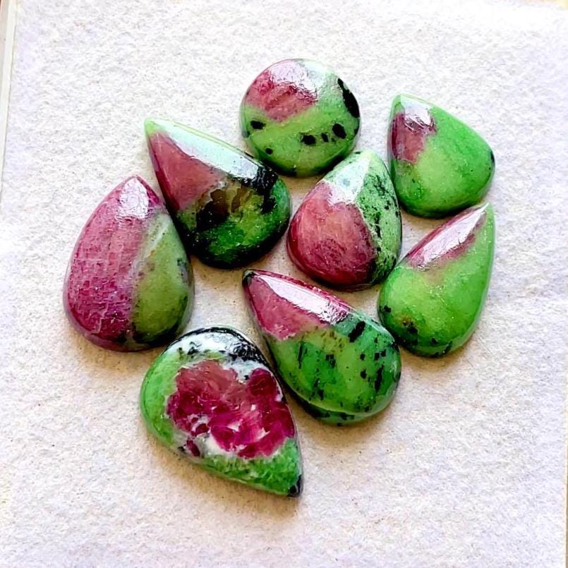 Selected Ruby Zoisite Cabochon Loose Gemstone 8 Pieces Lot, Top Quality Natural Ruby Zoisite With Flat Back For Handmade Jewelry