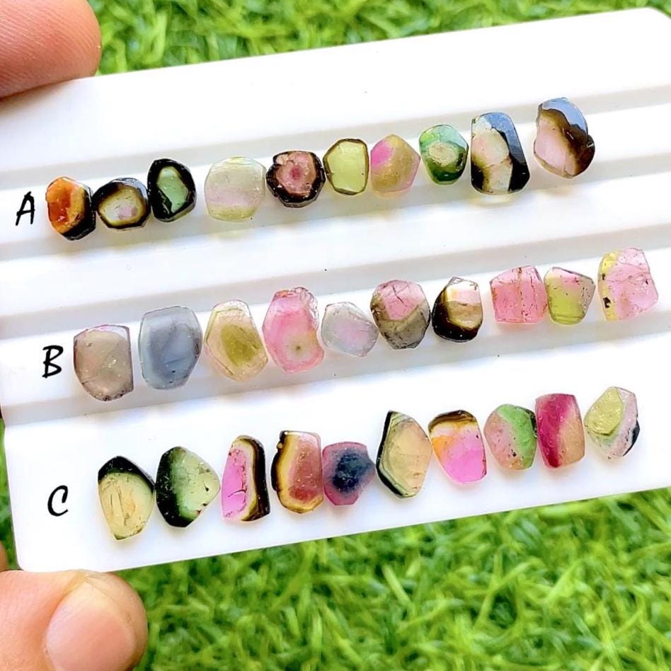 Multi Tourmaline Watermelon Gemstones Slice 10 Pieces Lot For Jewelry Making, AAA+ Natural Multi Tourmaline Watermelon For Handmade Jewelry