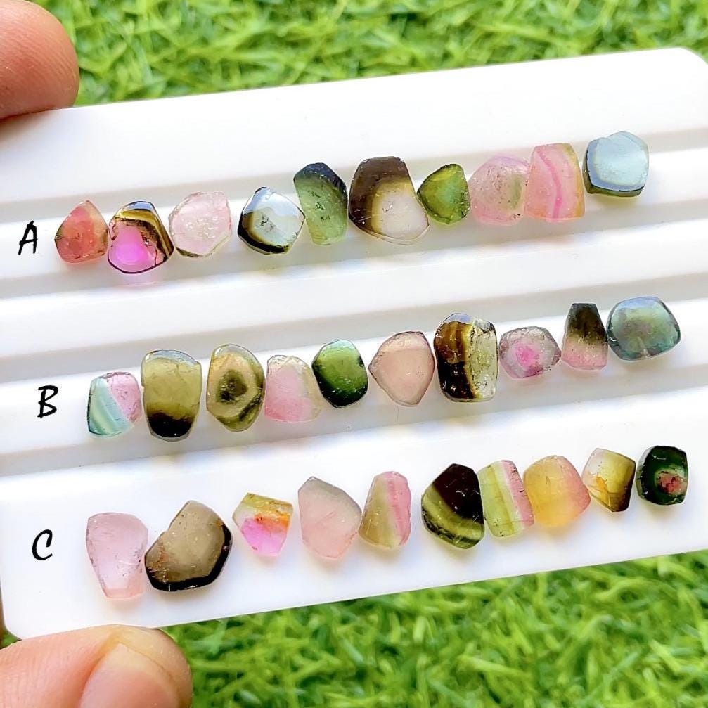 Multi Tourmaline Watermelon Gemstones Slice 10 Pieces Lot For Jewelry Making, AAA+ Natural Multi Tourmaline Watermelon For Handmade Jewelry
