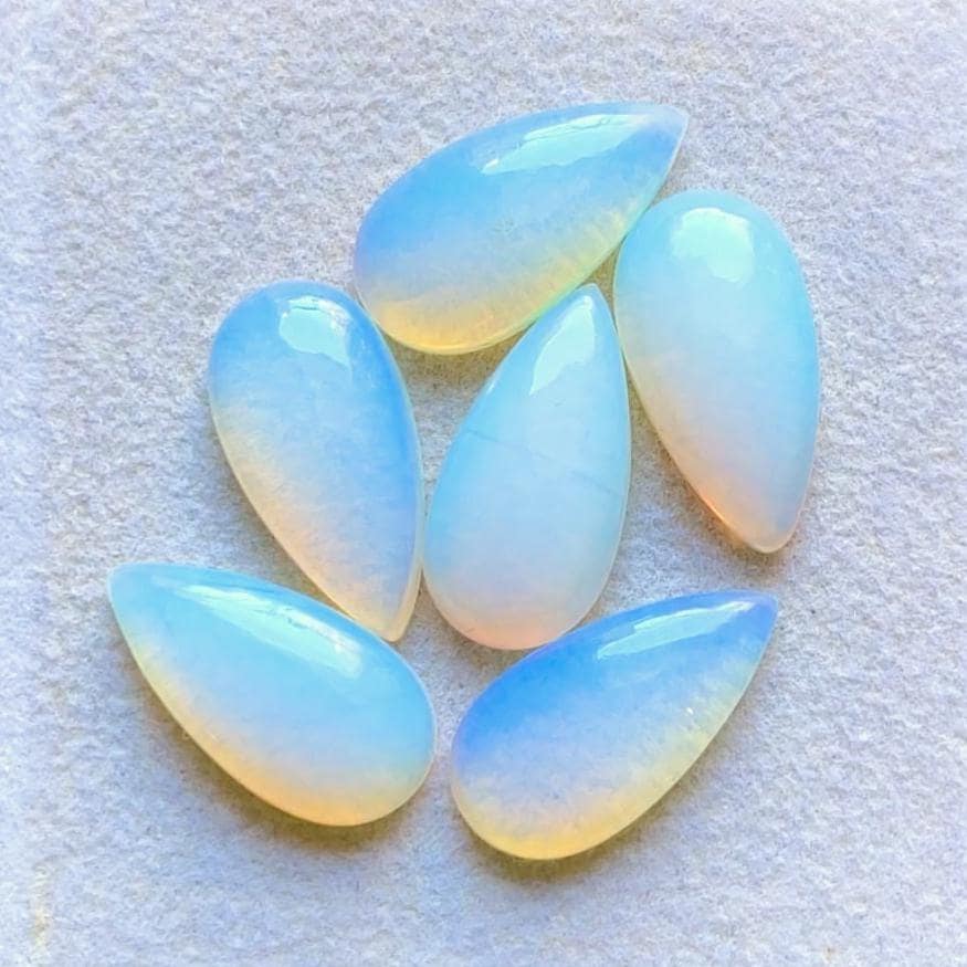 Opalite 10x20 MM Pear Shape Smooth Cabochon With Flat Back 6 Pieces Lot For Jewelry Making, AAA+ Natural Opalite For Handmade Jewelry