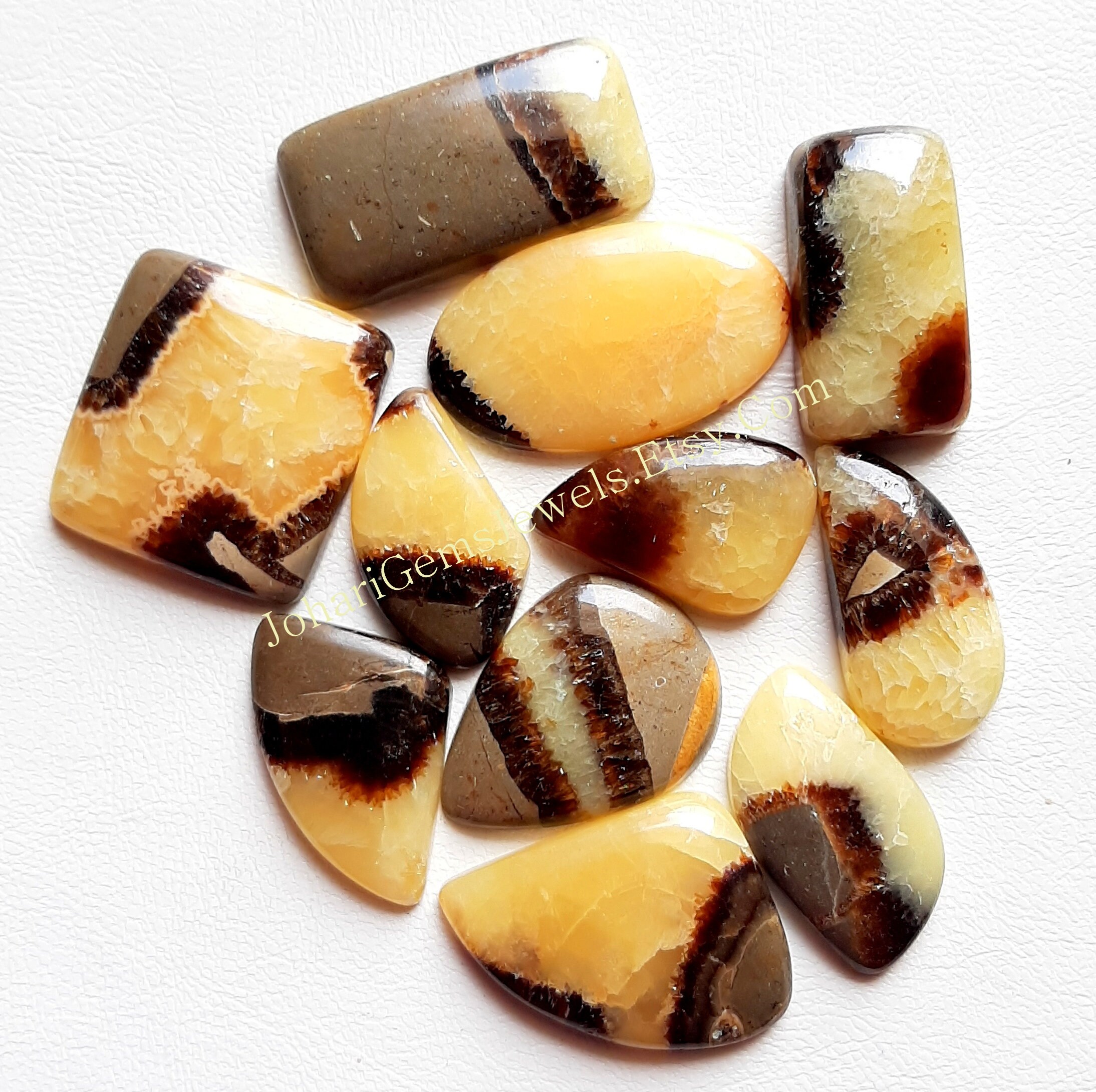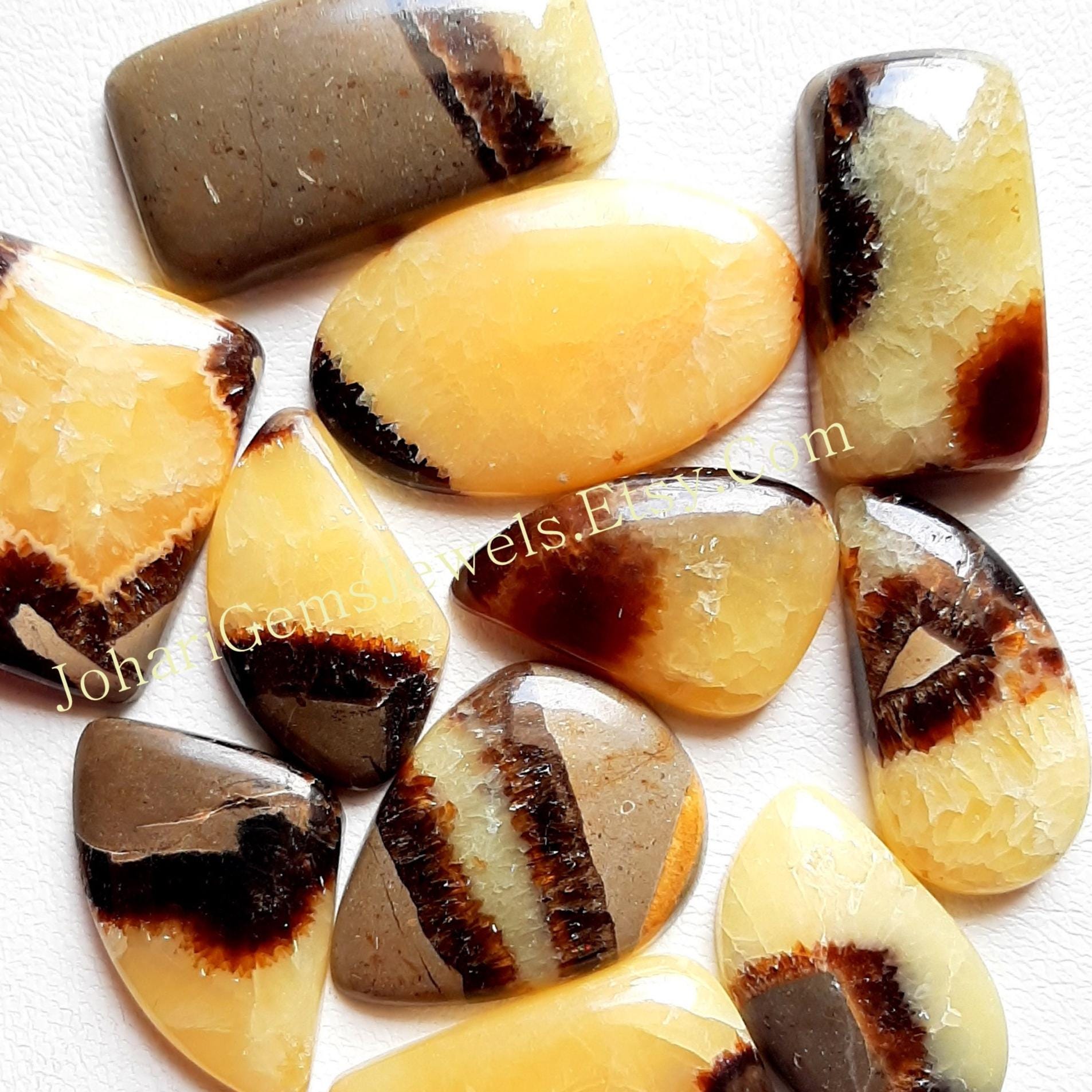 Natural Yellow Septarian Wholesale Lot Cabochon By Weight With Different Shapes And Sizes Used For Jewelry Making