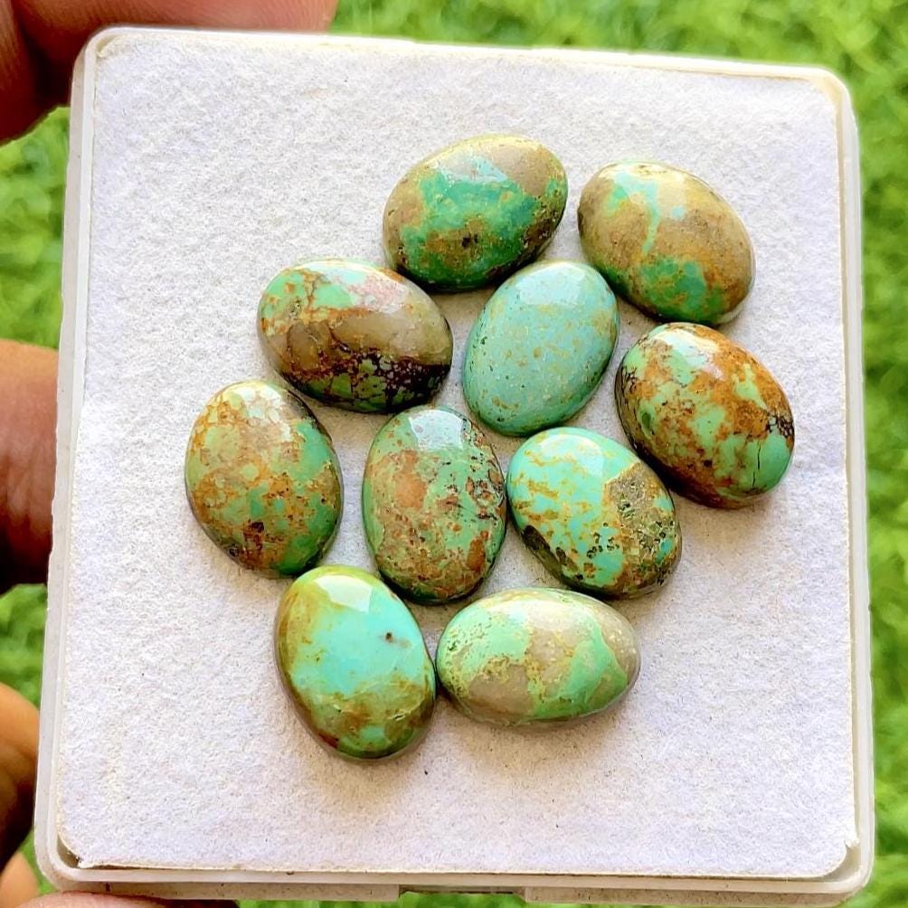 Selected Kingman Turquoise 10x14 MM Oval Shape Gemstone 10 Pieces Parcel, AAA+ Natural Kingman Turquoise With Flat Back For Handmade Jewelry