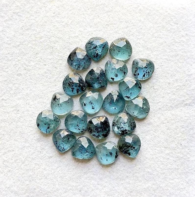 6 MM 20 Pcs Teal Moss Kyanite Rose Cut Heart Flat Back Gemstone Lot, AAA+ Teal Moss Kyanite Gemstone For Handmade Jewelry Making