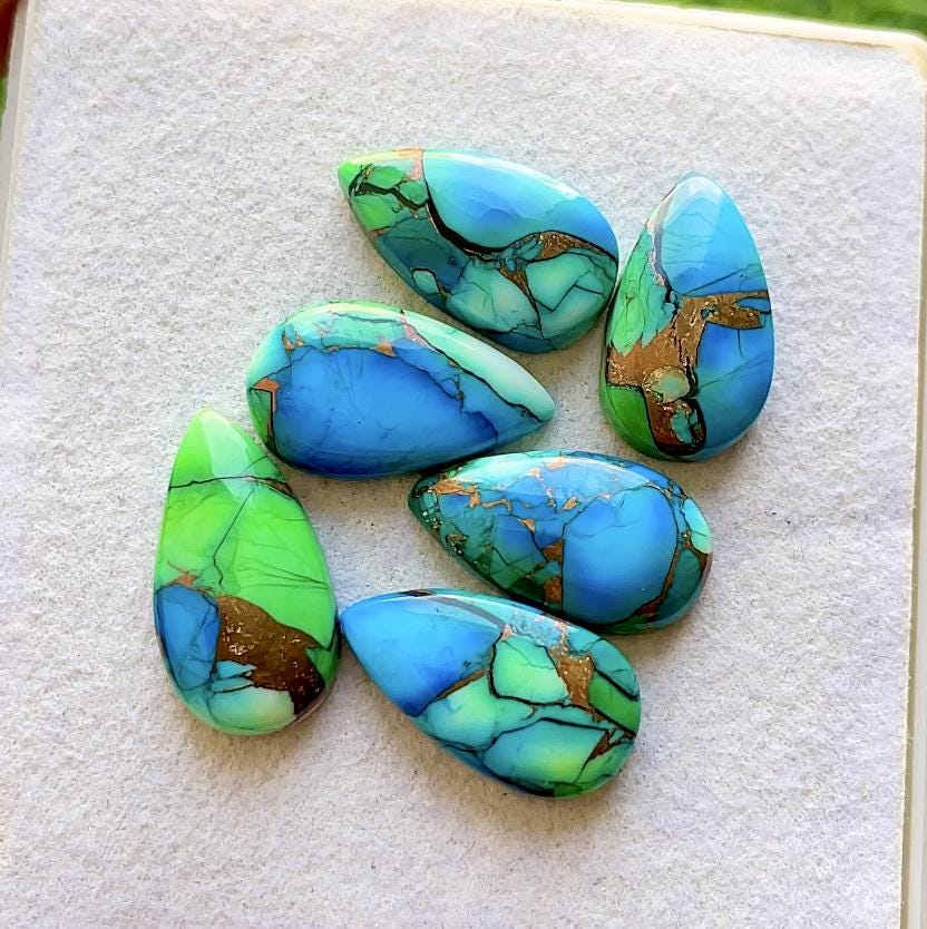 NEW 18x10 MM Green Copper Turquoise 6 Pieces Pear Smooth Cabochon Flat Back Gemstone Lot, AAA+ Green Copper Turquoise For Handmade Jewelry