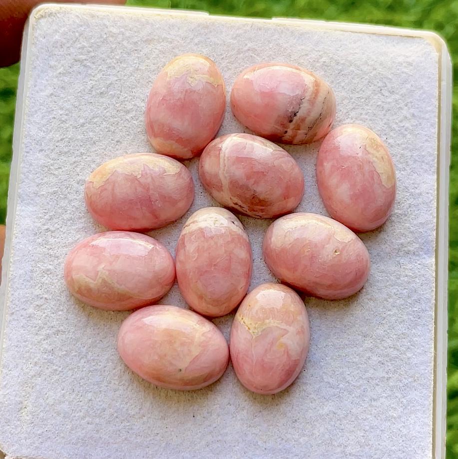 New 10x14 MM Rhodochrosite 10 Pieces Oval Smooth Cabochon Flat Back Lot For Handmade Jewelry, AAA+ Natural Rhodochrosite Oval For Jewelry