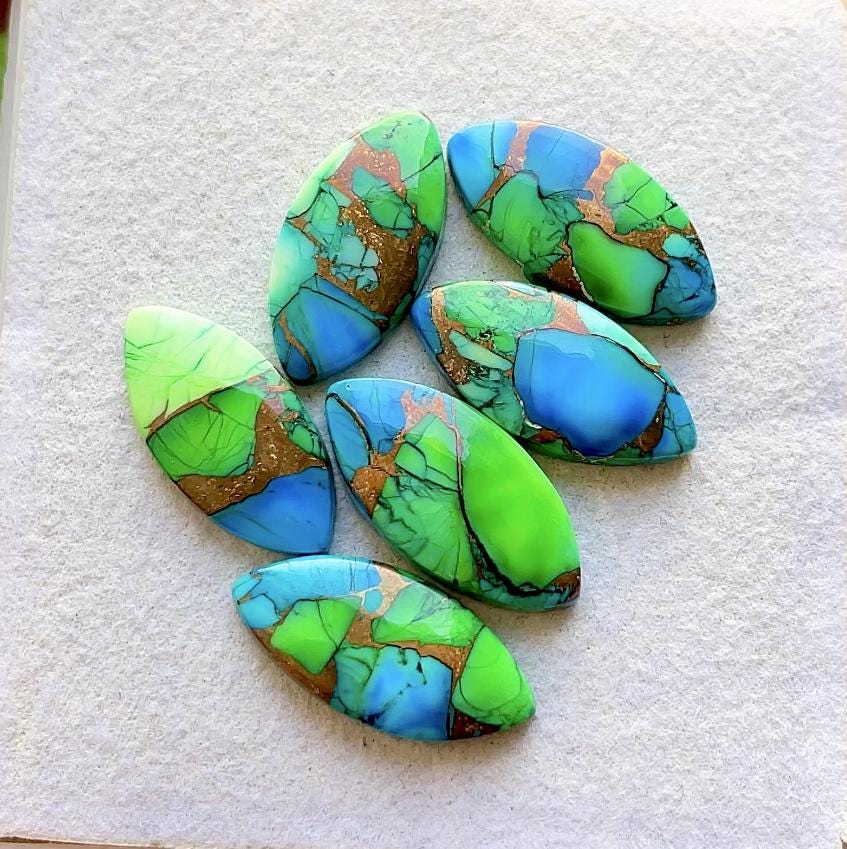 NEW 10x20 MM Green Copper Turquoise 6 Pieces Marquise Smooth Cabochon Flat Back Gemstone Lot, AAA+ Green Copper Turquoise For Handmade Jewelry