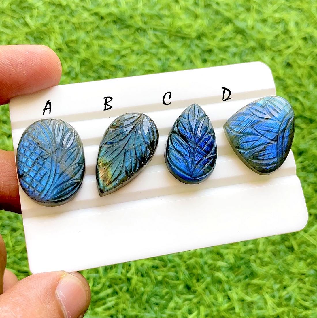 Hand Carved Blue Labradorite Loose Gemstone Cabochon, Mughal Art Carving Natural Gemstones, Carving Cabochon For Jewelry Making