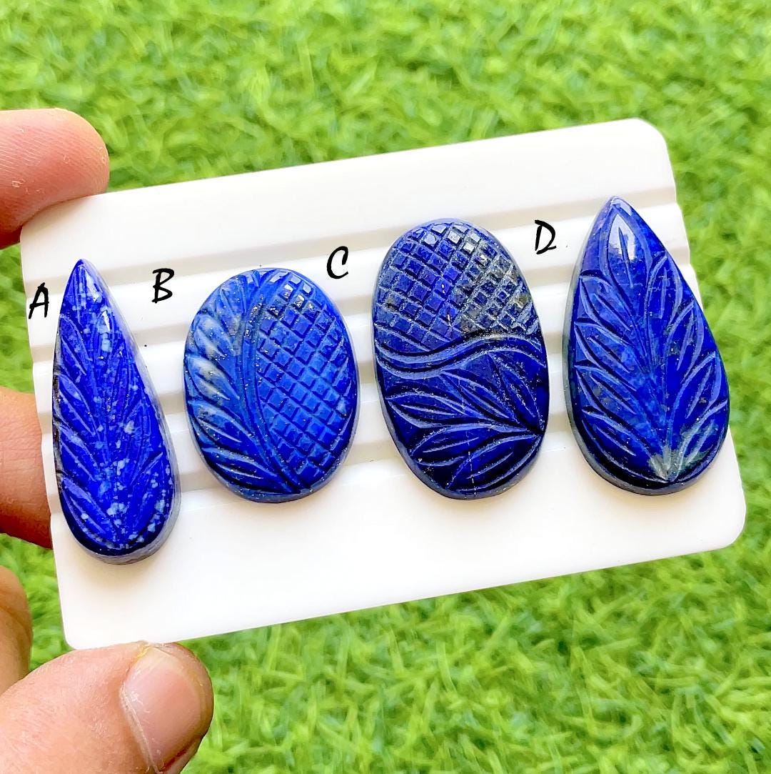 Hand Carved Lapis Lazuli Loose Gemstone Cabochon, Mughal Art Carving Natural Gemstones, Carving Cabochon For Jewelry Making