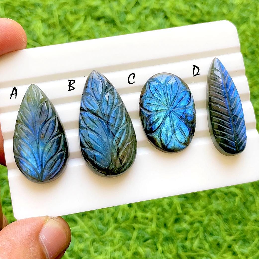 Hand Carved Blue Labradorite Loose Gemstone Cabochon, Mughal Art Carving Natural Gemstones, Carving Cabochon For Jewelry Making