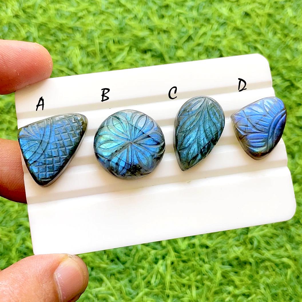 Hand Carved Blue Labradorite Loose Gemstone Cabochon, Mughal Art Carving Natural Gemstones, Carving Cabochon For Jewelry Making