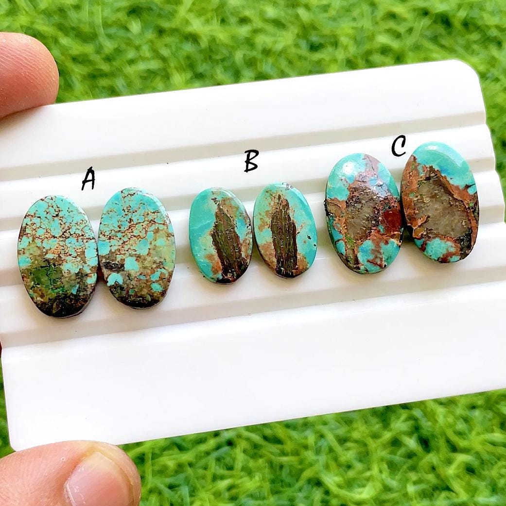 Natural Tibetan Turquoise Matching Pair Cabochon Loose Gemstone For Jewelry Making, AAA+ Natural Tibetan Turquoise Pair Cabochon For Earrings