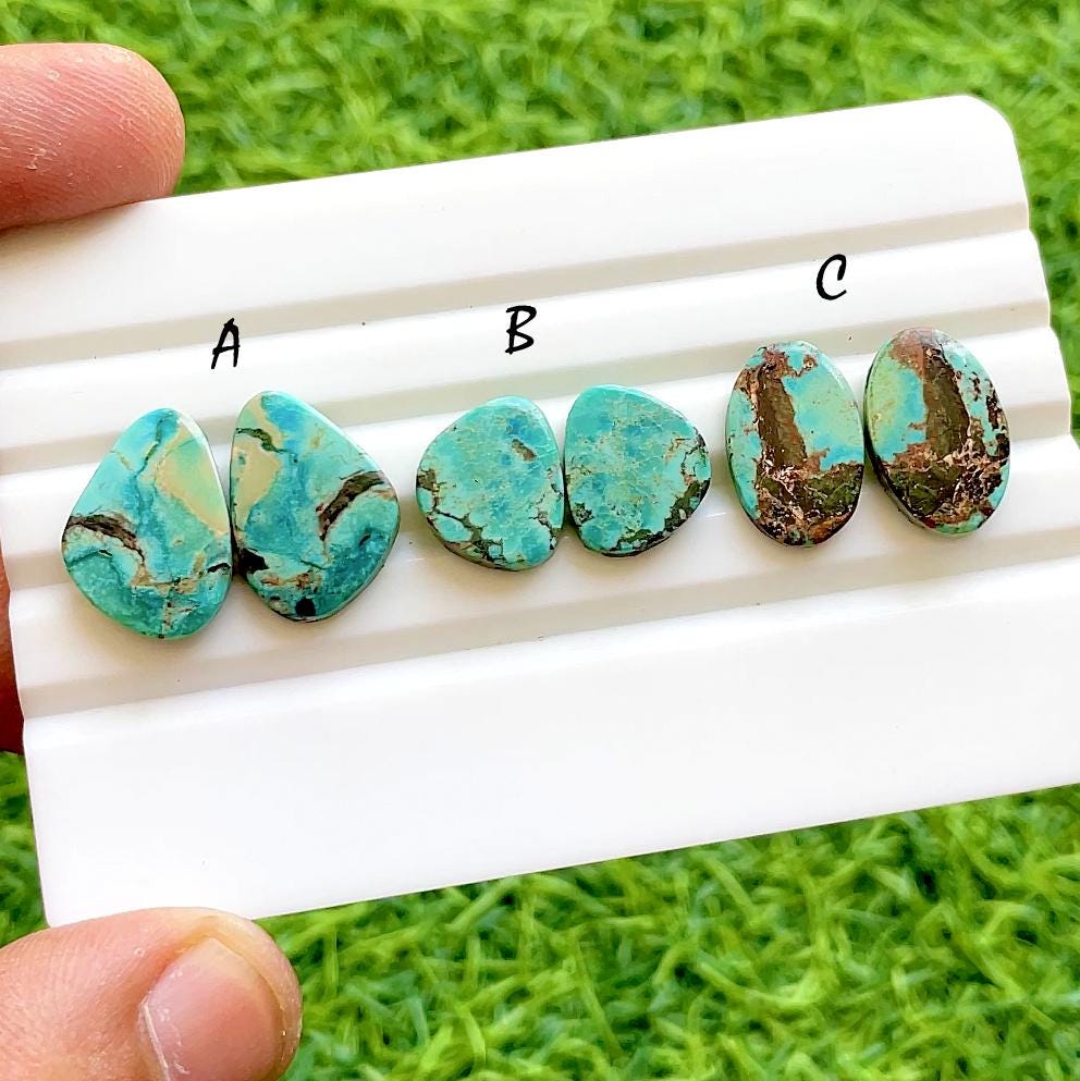 Natural Tibetan Turquoise Matching Pair Cabochon Loose Gemstone For Jewelry Making, AAA+ Natural Tibetan Turquoise Pair Cabochon For Earrings