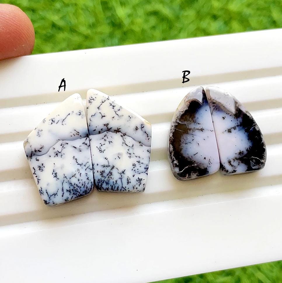 Beautiful Dendritic Opal Pair Cabochon Loose Gemstone For Jewelry, AAA+ Natural Dendritic Opal Matching Pair For Earrings